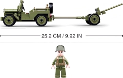 The combination of a jeep, trailer, and gun brings plenty of play scenarios—from reconnaissance to convoy defense. Detailed elements and functional proportions give the build a realistic look.