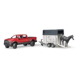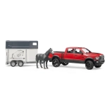 The Bruder off-road vehicle with horse trailer is the perfect companion for all young fans of cars and animals. Thanks to the opening doors and drop-down tailgate, handling the model is intuitive and fun. The model features high-quality sprung axles and profiled tires, so it can handle any terrain. The trailer enables easy transport of the horse and is equipped with opening doors for effortless handling.