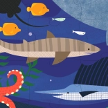 Double-sided puzzle with an ocean theme, featuring two unique designs across 49 pieces for double the fun for kids.