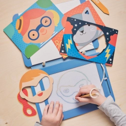 This drawing board has compact dimensions of 27x19x1 cm and includes an easy-to-use pen attached to the board with a string. With an eraser and stencils, children can easily transform their ideas into new creations!