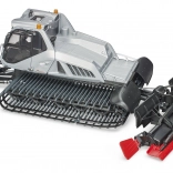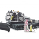 The model has a liftable and rotatable plow, a rear steering blade with a rotor, and adjustable external blades, providing an authentic experience in controlling the snow groomer.