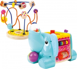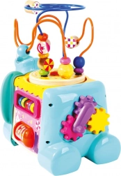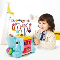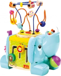 This multifunctional elephant-shaped activity cube is an ideal educational toy for the little ones. Thanks to colorful features and varied activities, children naturally practice fine motor skills, spatial awareness, and sensory abilities. The top features a bead maze with beads, while the sides include gears, sliders, and other clever tasks.