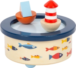 Discover the charm of the ocean-themed music box that soothes children before bedtime while developing their skills. The lighthouse and boat figures rotate smoothly to the lullaby and can be easily removed thanks to the magnetic attachment. Children wind the box themselves and practice their fine motor skills.