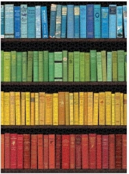 Galison puzzle I'd Rather Be Reading offers 1000 pieces of fun for all book and puzzle lovers! Immerse yourself in the photograph of color-coordinated books that captures the beauty of a well-organized library.