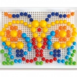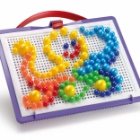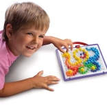 The creative QUERCETTI FANTACOLOR mosaic in a practical portable case develops fine motor skills, creativity, and imagination. Children insert colorful pegs into the perforated board to create pictures and patterns; after play, everything is easily stored in the case, whose lid serves as a game board.