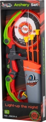 The XXL kids' archery set is an ideal choice for active play. The colorful bow with a rubber bowstring draw and suction-cup arrows enables safe shooting at the included target, both indoors and outdoors. Integrated light effects add appeal even in dim conditions.