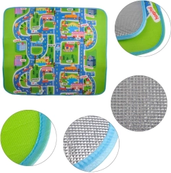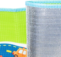 The mat insulates against cold and cushions falls. Your child will be able to play safely on the floor. A perfect addition to a child’s room that makes playtime more fun for every child. The underside features a layer of thermal insulating foil, so you can take it to the garden or the beach.