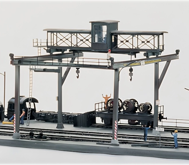 The gantry crane from the PIKO Authentic Edition series is part of the locomotive scrapyard kit range, but it can also be used elsewhere, for example as part of a transshipment yard or other industrial settings. With its intricate structure full of small details, it is aimed especially at more experienced modelers. The crane’s large platform can be easily and practically used when shaping its immediate surroundings. Other items shown in the picture (cars, figures, etc.) are not included. PIKO plastic miniatures are ideal for designing realistic layouts and dioramas. With sophisticated coloring, in this series also including weathering, they replicate their prototypes with maximum fidelity, which in some cases can be further enhanced individually using the included decals. The detailed and precise plastic castings of the individual parts fit together smoothly, and thanks to the detailed instructions included with each kit, assembly is easy, allowing you to devote your valuable time to designing a unique landscape and arranging the elements on the scene. Among the accessories offered for these models you will find a variety of add-ons, consumables, and guides with instructions and valuable tips for layout design. Made in Germany, in accordance with the strictest quality standards. Main features: H0 scale (1:87); expandable with additional kits; realistic colors with weathering; easy assembly; made in Germany. Documentation: assembly instructions for model no. 61102