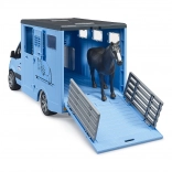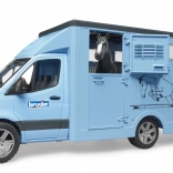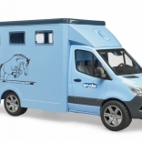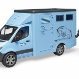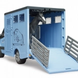 This finely detailed horse transporter is based on the popular MERCEDES‑BENZ Sprinter utility vehicle. Kids will love the functional cab with opening doors, the realistic box body for safe transport, and the abundant play features—from loading via the ramp to a divider configured for two horses.