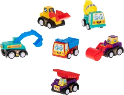 Introducing a set of six colorful construction vehicles with friction drive, which only need to be pushed to move on their own. These cars stimulate children's imagination and bring joy to play.