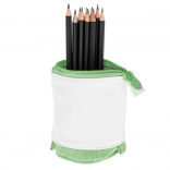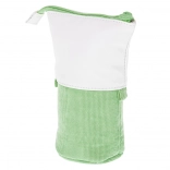 Practical 2-in-1 school pencil case in green that transforms into a desk organizer with a single motion. It offers spacious storage for writing tools, a durable textile material, and secure zip closure for everyday use at school, university, or in the office.