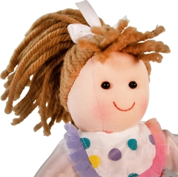 A soft fabric body, embroidered eyes, and gentle yarn hair provide safety even for the smallest children. Ideal as a first cuddly doll.