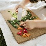 This hammering toy is ideal for little explorers with imagination. Develops motor skills and promotes creativity in children. The set includes pieces of various shapes and colors that can be easily hammered into the cork board.