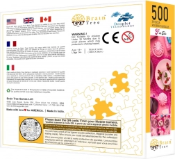 Discover premium Brain Tree puzzles with the “Pink Table Setting” motif, 500 pieces. Enjoy a matte finish for flawless detail visibility, random-cut pieces for extra fun, and durable printing that withstands repeated assembly. The box includes a poster, cardboard sorting trays, and a box-lid stand for convenient reference viewing.