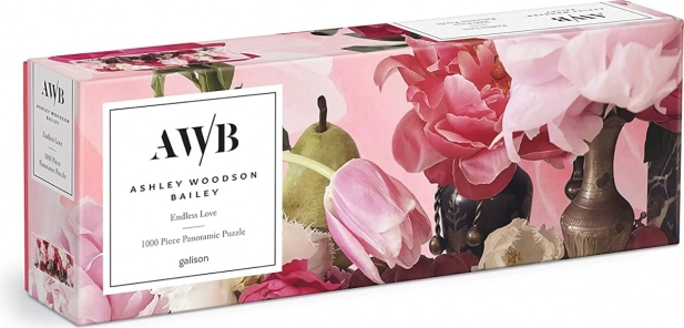 Enjoy a relaxing moment with the panoramic puzzle featuring the Endless Love design by ASHLEY WOODSON BAILEY. This luxurious 1000-piece puzzle from GALISON, made from recycled paper, offers top-quality printing with safe inks, a matte finish for true-to-life colors without glare, and a carefully curated floral motif inspired by Dutch still lifes.