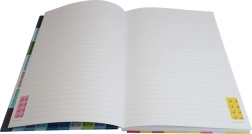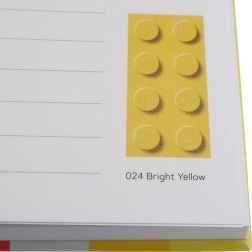 Each ruled page features an illustration of a brick in a specific LEGO shade to make writing more enjoyable and boost creativity.