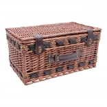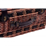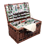 The Deluxe Picnic Basket is an ideal choice for those who appreciate not only functionality but also aesthetics. This basket is fully equipped for four people, including plates, cutlery, wine glasses, a knife, a pepper shaker, and a salt shaker. The showcased design combines rustic charm with modern practicality.