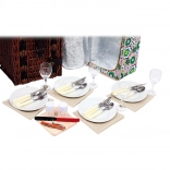 The basket includes everything you need for picnicking with family or friends: plates, cutlery, wine glasses, a knife, a pepper shaker, a salt shaker, and napkins.