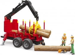 The Bruder log transporter with loading arm is the perfect helper for all children who love to play forest workers. This model is equipped with a rotating loader with a grapple, which rotates 360°, allowing for easy lifting and moving of logs. Sliding stakes and flexible axles ensure terrain-following, making the game realistic and enjoyable. This set includes four pieces of logs that can easily connect to all Bruder tractors.