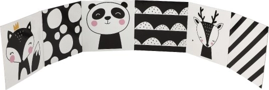 Alternating high-contrast shapes and cute illustrations in a Nordic style captivate children and later help them learn to recognize individual forest animals. The practical accordion format lets you unfold the book and stand it up in front of the baby, even if they can’t turn pages on their own yet.