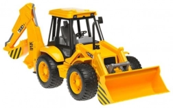 A realistic construction vehicle model for young builders: BRUDER JCB 4CX in 1:16 scale offers a fully functional front loader and rear backhoe, a 360° rotating seat, extendable support legs, and soft treaded tires. High-quality plastic, made in Germany.