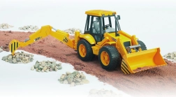 The BRUDER JCB 4CX is a detailed backhoe loader that faithfully replicates the real construction machine and gives children an authentic play experience at home or in the sandbox. Thanks to the functional parts—the front bucket and the rear backhoe arm—children can load, dig, and transport material just like on a real construction site.