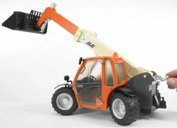 This high-quality functional plastic model at a 1:16 scale faithfully replicates the real JLG 2505 loader. Thanks to realistic details and well-thought-out functions, children will enjoy hours of creative construction play. Steering of all four wheels via a wheel on the cab ensures excellent maneuverability and a smaller turning radius.