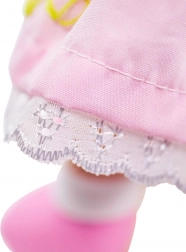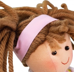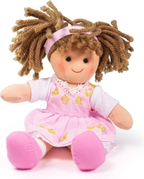 The doll is made from soft textile materials, making her a perfect companion for the smallest children.