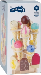 The Wooden Ice Cream Stand Small Foot encourages children to engage in creative play while helping them develop cognitive and communication skills. This colorful set includes three tiers with ten ice creams and five popsicles that can be placed into circular slots or settled into the stand base.