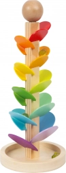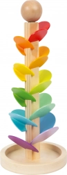 The Small Foot wooden marble run turns every marble drop into a little concert. As the glass marble slides over the colorful leaves, it produces progressively higher to lower tones that stimulate auditory perception and bring children a calming and entertaining experience. The robust wooden construction with a stable base and smooth surface feels pleasant to the touch and is ready for everyday play.