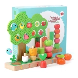 Discover the playful wooden set from Vilac that helps children learn to count, recognize colors and shapes, and at the same time practice fine motor skills. Colorful fruit and vegetable pieces are placed on numbered pegs, and beads move along the tree – the safe, durable design is ideal for children from 18 months.