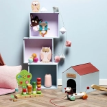 This high-quality wooden toy combines fun and learning in one. Children stack and thread carrots, leeks, cherry tomatoes, and other shapes onto numbered pegs 1–5, naturally acquiring counting as well as sorting by color and size. It also includes a tree with sliding elements for exploration and hand–eye coordination training.