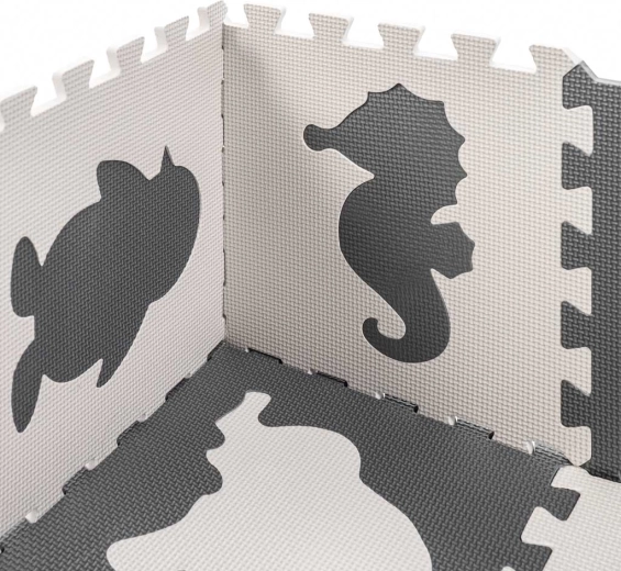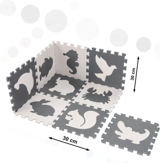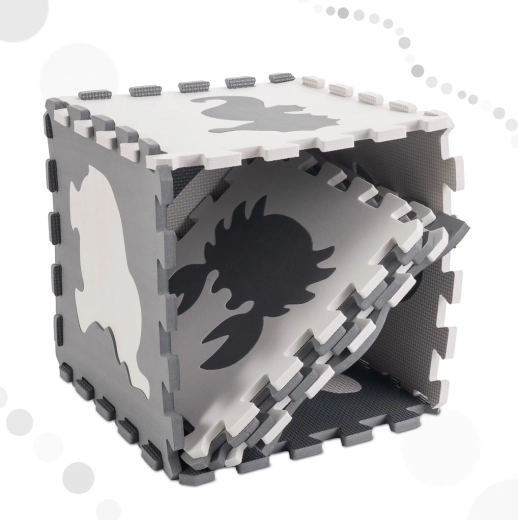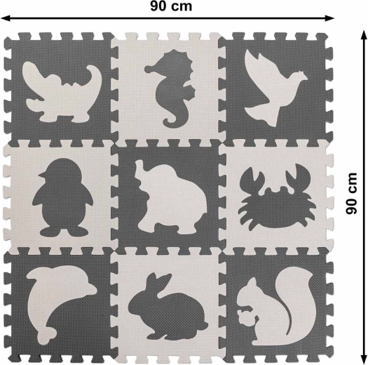 Large foam animal puzzle tiles are ideal for first steps and everyday play. From the tiles you can easily assemble a play mat or define a child’s zone. Removable shapes support shape recognition, fine motor skills, and logical thinking. Contrasting colors and a lightly textured surface stimulate sight and touch.