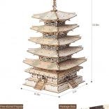 This model from the ROBOTIME ROLIFE Do It Yourself series lets you create your own 3D wooden pagoda. Its laser-cut pieces made of plywood are a joy to work with, all from safe and non-toxic materials. This model puts your technical skills and imagination to the test while developing your attention to detail and fine motor skills.