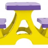 A compact picnic set made of high‑quality plastic consists of a table and two benches. It offers a lightweight and durable design, easy maintenance, and dimensions 79 × 78 × 47 cm in an attractive yellow‑purple finish.