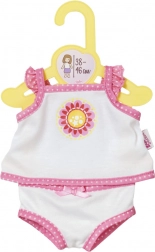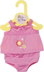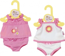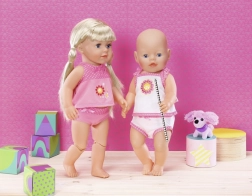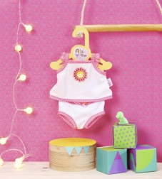 The practical design with elastic trims ensures comfortable wear and long-lasting durability for everyday play. The set includes matching tank top and panties, which can be combined with other doll clothing pieces.