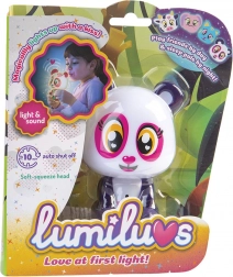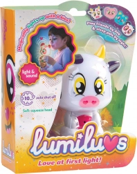 The Lumiluvs animal lights up and babbles when you blow on its tummy and kiss. The product requires 3× LR44 batteries, which are included in the package.
