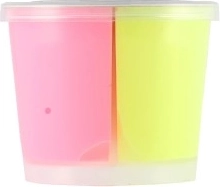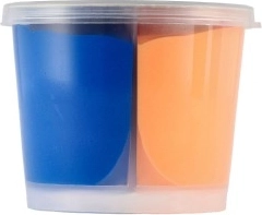 The practical divided cup lets you have two bold colors ready for shaping and mixing—tidy and organized.