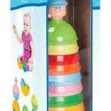 This set contains 10 colorful cups that can be stacked into a pyramid shape. It is a great tool for children learning hand-eye coordination, color recognition, and problem-solving. The total height of the pyramid is 28 cm, which is the ideal size for small children.