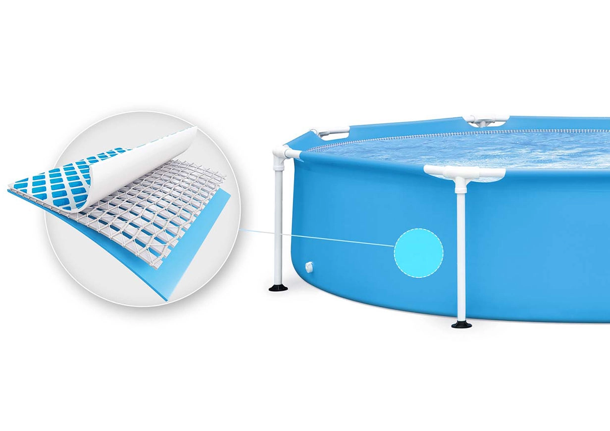 The steel frame ensures high stability and safe operation. The pool keeps its shape firmly and the water reaches an optimal height for children and adults.