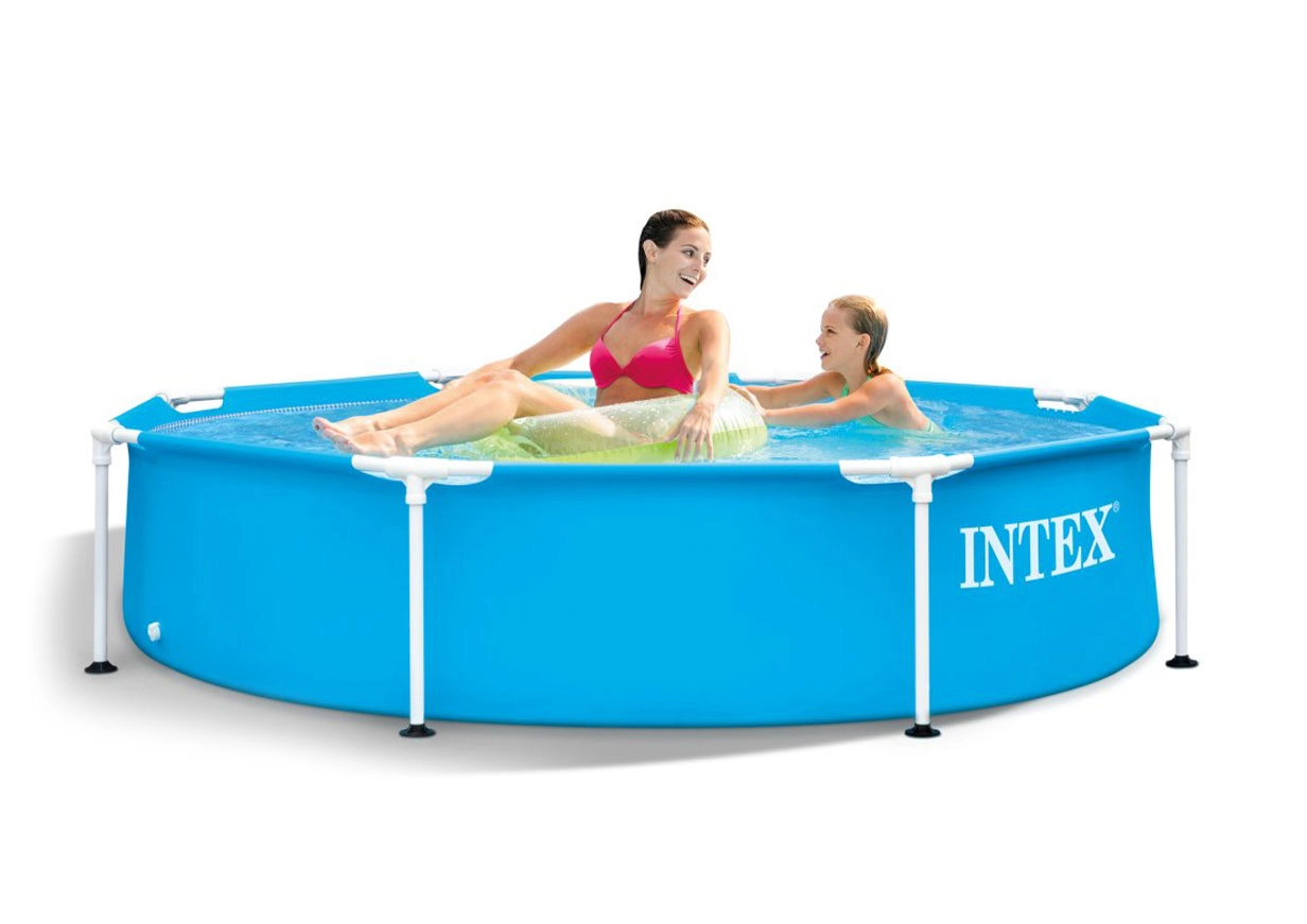 The INTEX Metal Frame garden pool with a diameter of 244 cm provides refreshment and fun for both children and adults. Thanks to the sturdy metal structure and durable three-layer PVC, the pool is stable, safe, and ready for everyday use during hot days. Easy and quick assembly lets you fill it with water without unnecessary waiting.