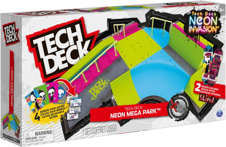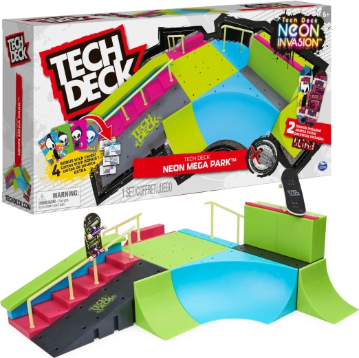 Tech Deck Neon Mega Park – fingerboard skatepark ramps with 2 fingerboards and trick cards