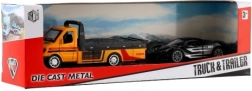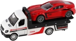 Tow truck with toy car 11 cm with pull-back, metal/plastic, in gift box