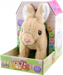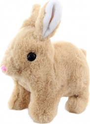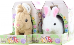 Battery-powered plush rabbit. The rabbit hops, makes sounds, and wags its tail. Powered by 2 AA batteries (not included). Rabbit dimensions approx. 15 x 19 x 7.5 cm. Packaging dimensions approx. 13 x 19 x 18 cm (also serves as a little house). Age 3+
