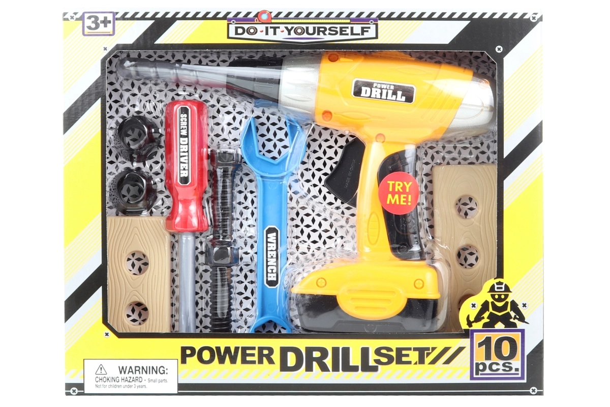 This kids’ tool set encourages imagination and fine motor skills. The realistic drill spins and makes a sound when pressed, without the need for batteries. Children can safely try the role of a repairer or builder.
