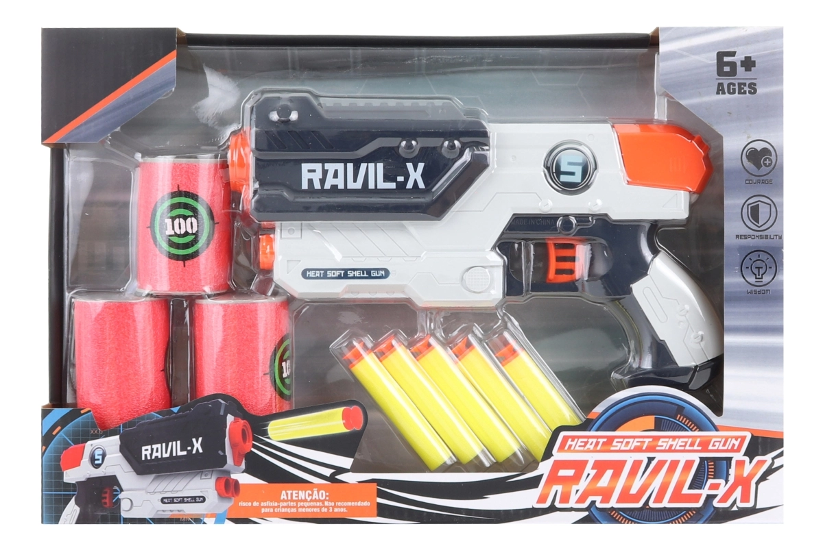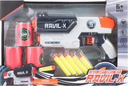 A fun plastic foam dart gun for kids aged 6+ brings safe action play indoors and outdoors. The package includes a blaster, 5 foam darts and 3 foam cylinders as targets for accuracy training. Ideal for developing coordination and quick reflexes.