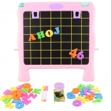 This magnetic board offers two creative play options - one side is a black magnetic board for use with magnetic letters, and the other side is a whiteboard ideal for drawing with markers.