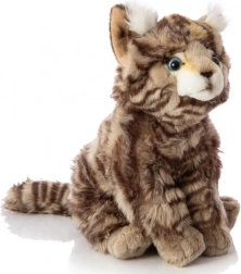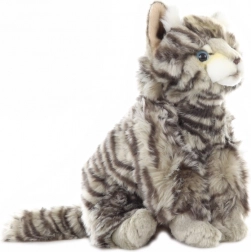 This plush cat has realistic patterns and color shades that give it an authentic appearance of a real cat.