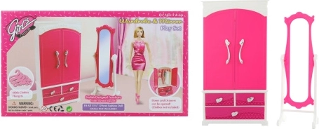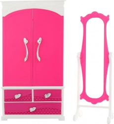 The GLORIE wardrobe with mirror is a great addition to the world of dolls. It offers opening doors and drawers for storing dresses and accessories, and practical hangers for hanging favorite outfits. Thanks to the included mirror, kids can easily mix and match and try new stylish creations.