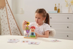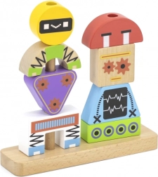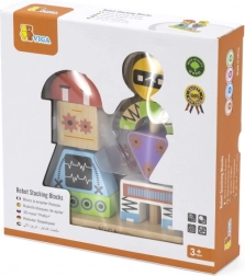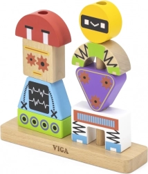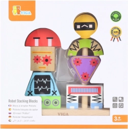 Colorful wooden stacking game by VIGA for children aged 3+ supports creativity, fine motor skills, and logical thinking. From 8 sturdy pieces, kids build cheerful robots based on pattern cards or their own imagination. Safe design made of beech wood with non-toxic paints and practical gift packaging.